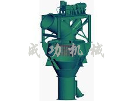 入口進來的物料經(jīng)多級打散板打散、剝離,各打散板之間從左側(cè)吹來的風(fēng)將料流中的中粗料及細料吹離,物料從底部出料口排出。懸浮于氣流中的粉料隨風(fēng)進入提取區(qū)的多層分級板之間,分級板將懸浮于氣流中的粉料進一步提取較粗物料,粗料沿分級板下滑,被風(fēng)再次吹起,反復(fù)提取, *后粗粉并入物料。出分級板的風(fēng)帶料進入中料提取區(qū),粉料隨氣流進入提取區(qū),在籠形轉(zhuǎn)子的作用下甩出稍粗料,粗料撞擊弧形導(dǎo)流板落入粗料收集錐,含粉氣流進入旋風(fēng)筒進行氣固分離,分離出的細粉由粉料口排出,較為干凈的空氣經(jīng)出風(fēng)管進入風(fēng)機循環(huán)使用。
